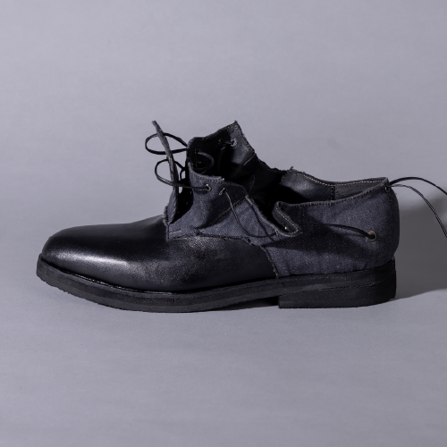 이 특성을 착용 행위와 연결하여 힐탭을 당기면 주름이 접혀 앞쪽이 조여지고, 놓으면 주름이 펼쳐지며 쉽게 신고 벗을 수 있는 구조입니다.