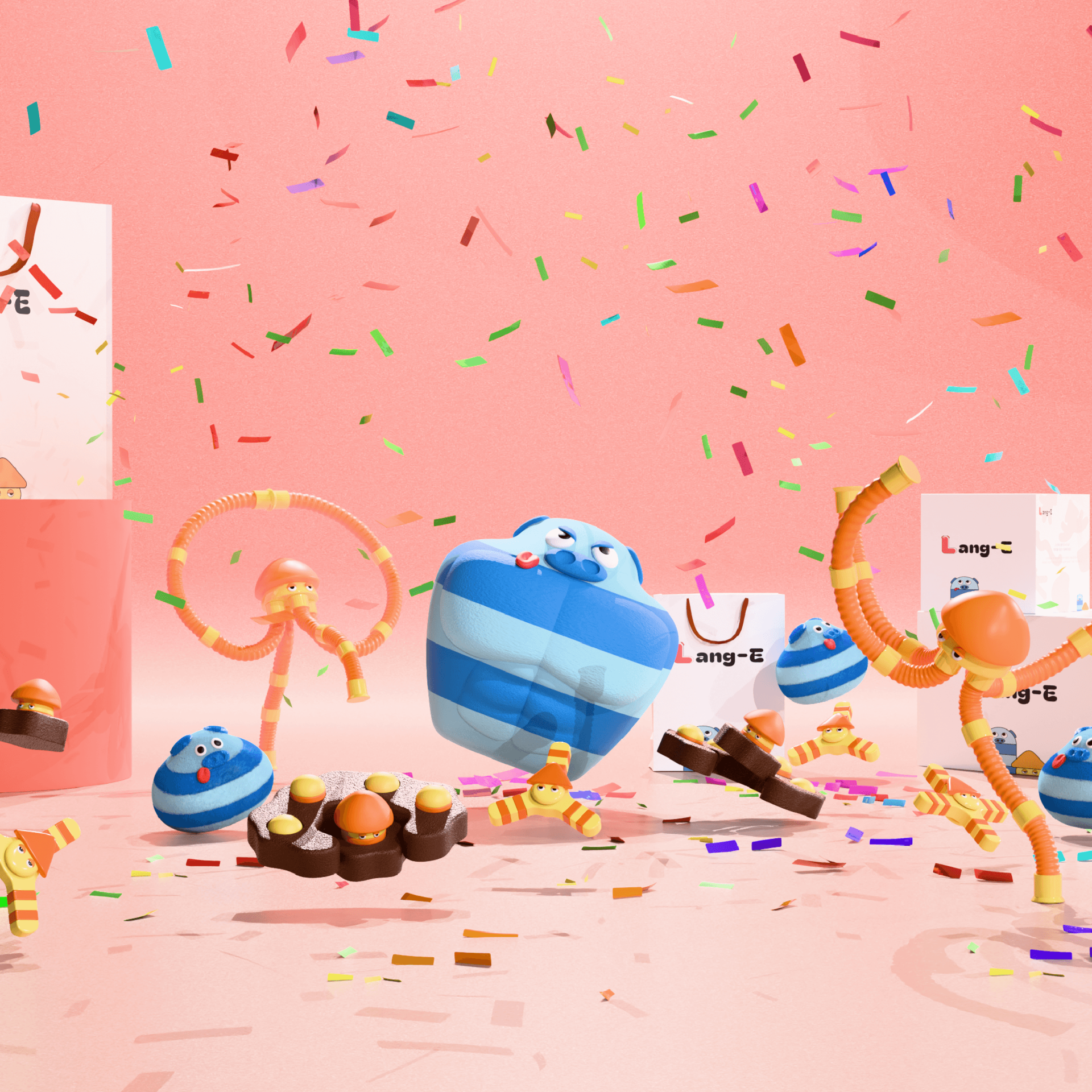 Lang-E는 ‘스트레스를 흡수하는 외계 친구’라는 세계관을 바탕으로 제작된 감정 케어 제품입니다. 피젯 스피너, 스트레스볼, 팝튜브 등 손끝으로 사용할 수 있는 다양한 형태로 구성되어 있으며, 사용자는 만지고, 돌리고, 누르는 행위를 통해 스트레스를 완화하고 즐거움을 느낄 수 있습니다. 지랑이들은 단순한 장난감을 넘어, 감정과 놀이가 공존하는 힐링 오브제로서 일상 속 작은 위로를 전합니다.