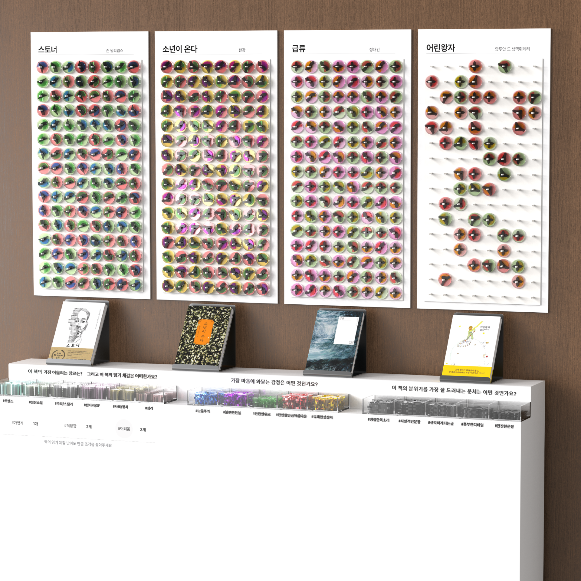이 작품은 대형서점이라는 열린 공간 속에서, 책을 읽지 않은 사람은 후기를 통해 책을 발견하고, 책을 읽은 사람은 자신만의 경험을 남기며 서로의 감정을 교류할 수 있는 참여형 설치 예술이다.